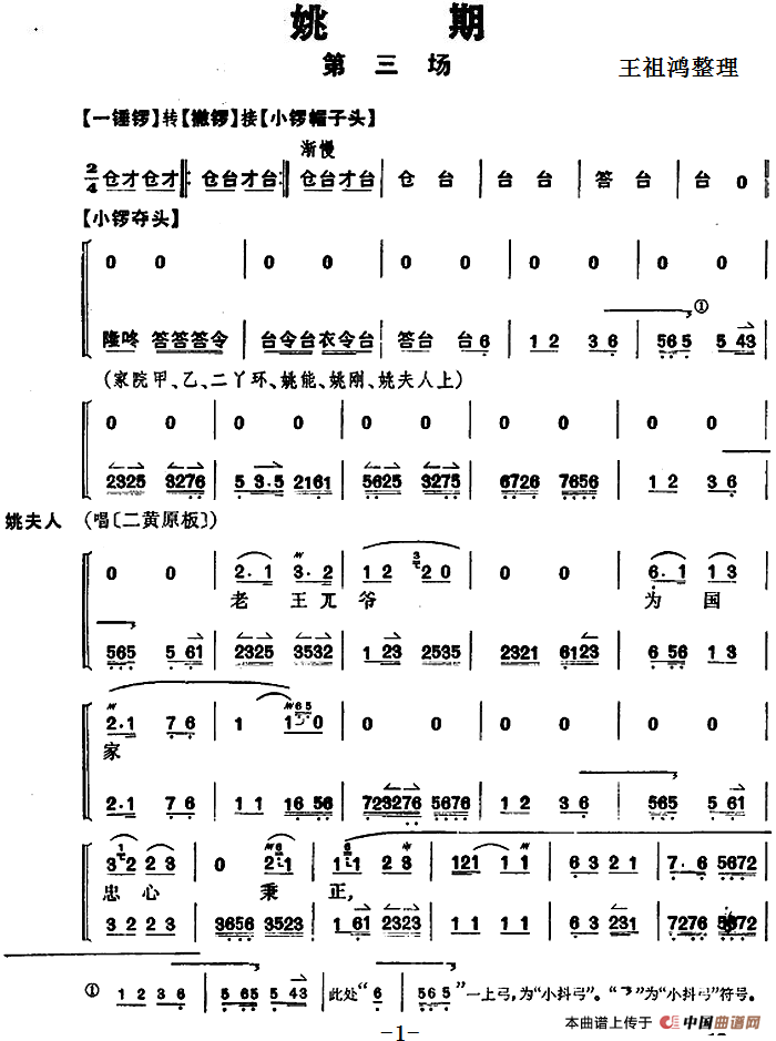 关于《《姚期》第三场》曲谱的评论