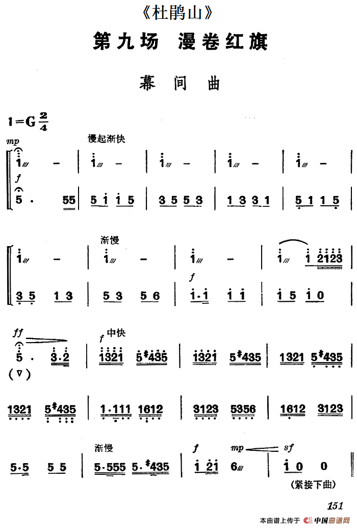 关于《《杜鹃山》第九场·漫卷红旗》曲谱的评论