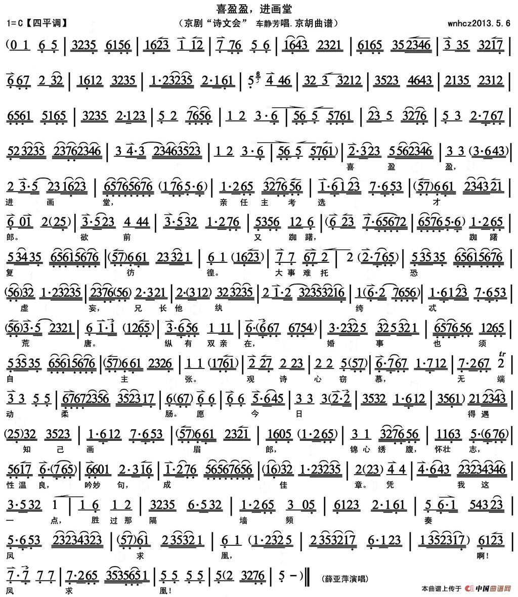 喜盈盈,进画堂(《诗文会》车静芳唱段、京胡曲谱)