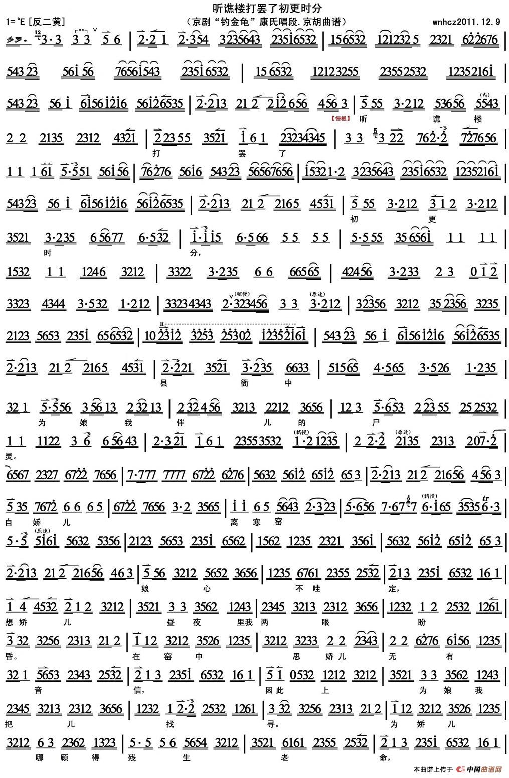 听谯楼打罢了初更时分(《钓金龟》康氏唱段、京胡曲谱)