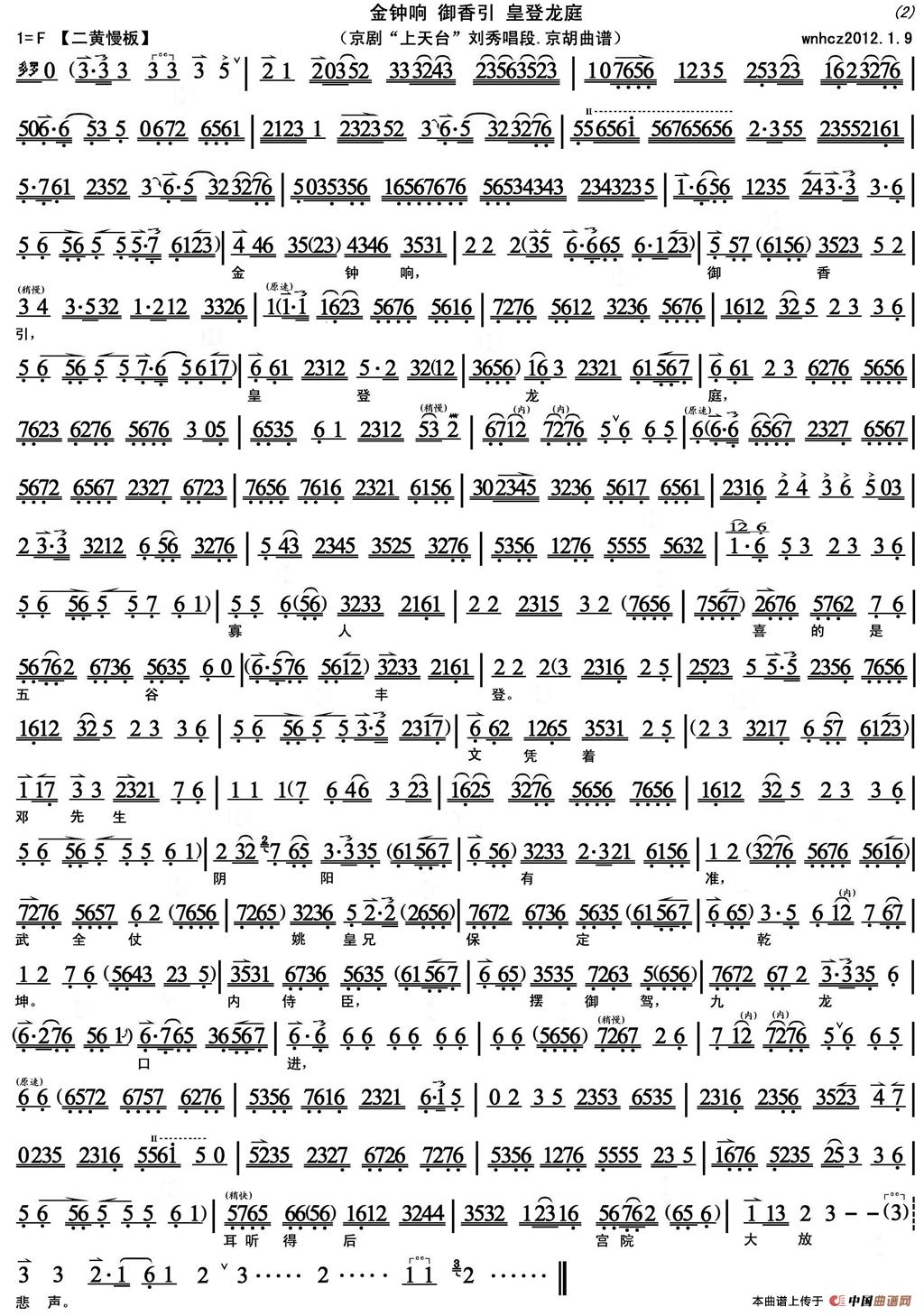 金钟响御香引皇登龙庭(《上天台》刘秀唱段、京胡曲谱)