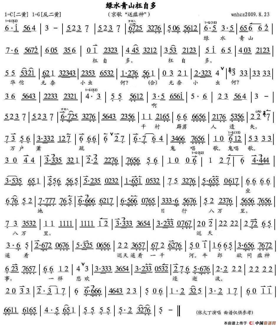 绿水青山枉自多(京歌《送瘟神》、琴谱)