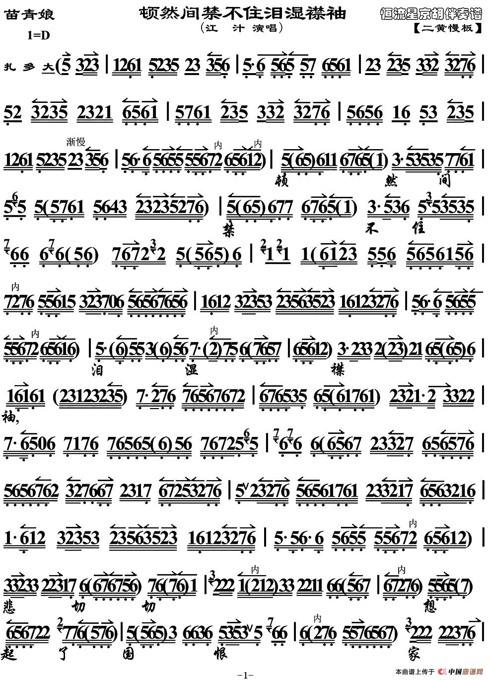 顿然间禁不住泪湿襟袖(《苗青娘》选段、琴谱)