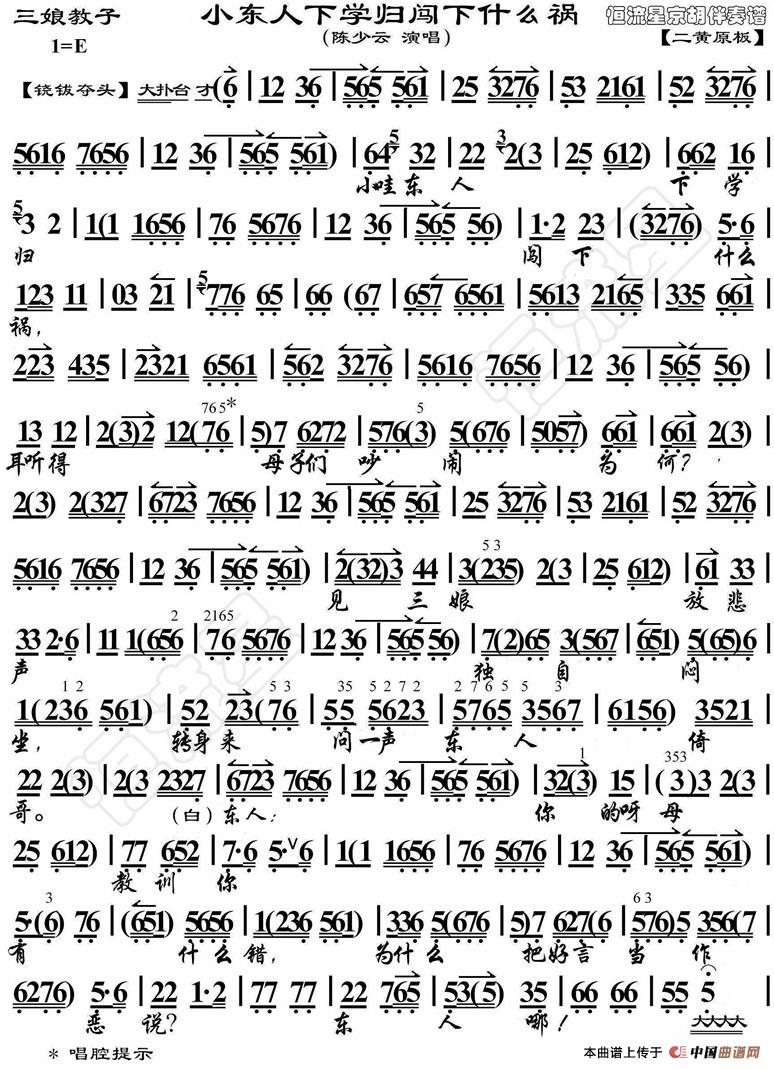 小东人下学归闯下什么祸(《三娘教子》选段、琴谱)
