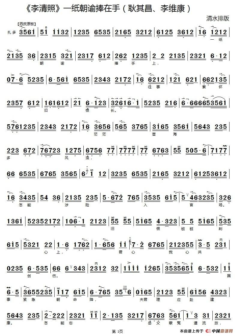 关于《一纸朝谕捧在手》曲谱的评论