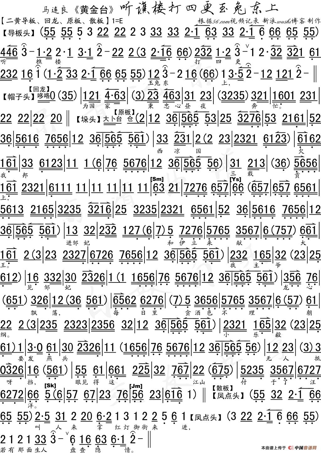 关于《听谯楼打四更玉兔东上》曲谱的评论