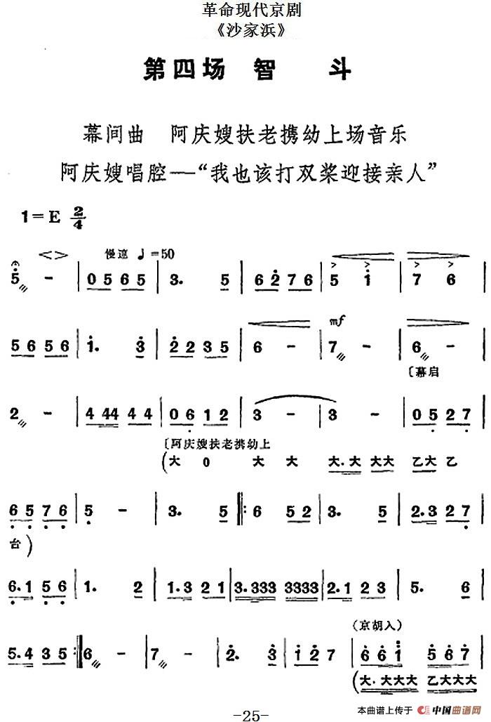 革命现代京剧《沙家浜》全剧主旋律乐谱之第四场 智斗