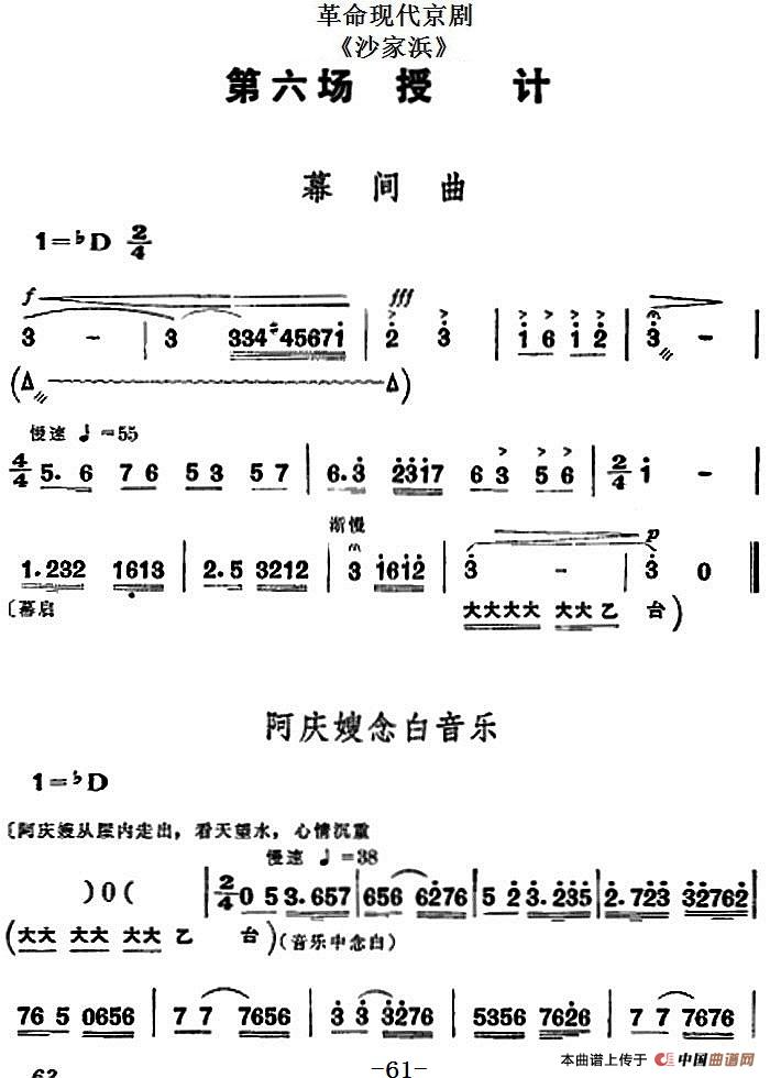 关于《革命现代京剧《沙家浜》全剧主旋律乐谱之第六场 授计》曲谱的评论