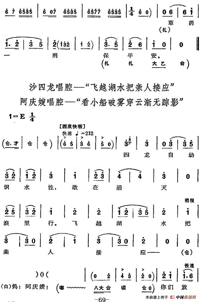 革命现代京剧《沙家浜》全剧主旋律乐谱之第六场 授计