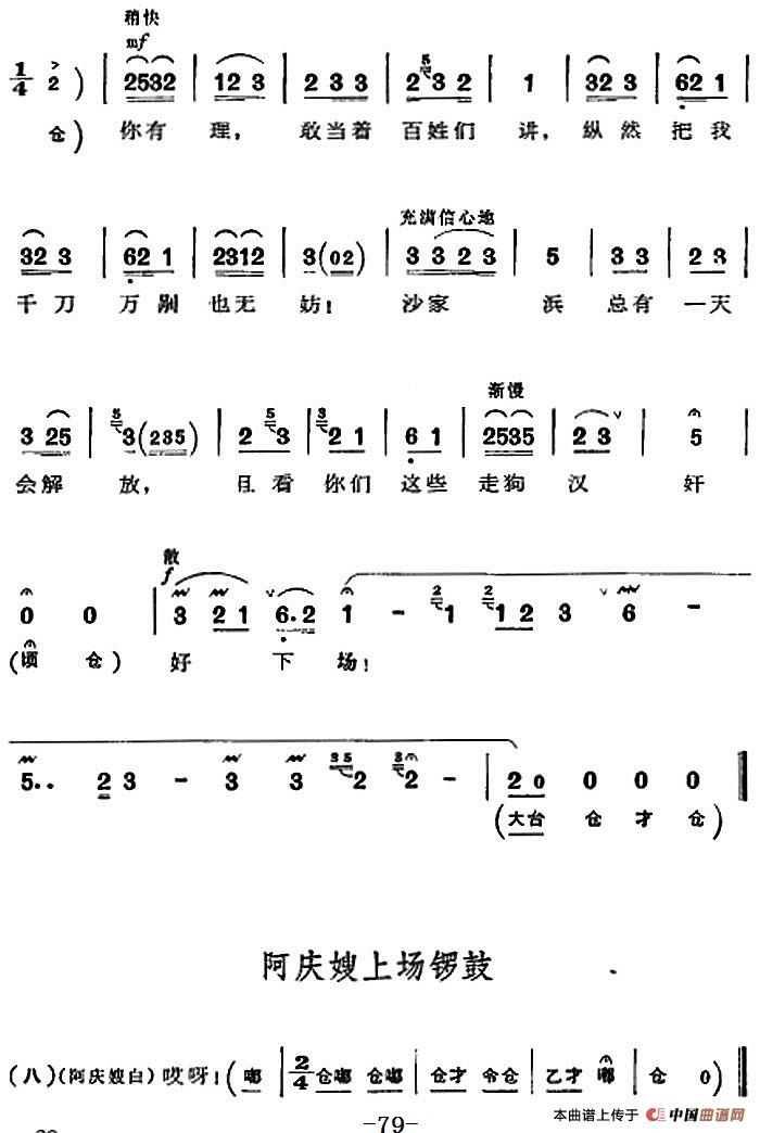 革命现代京剧《沙家浜》全剧主旋律乐谱之第七场 斥敌