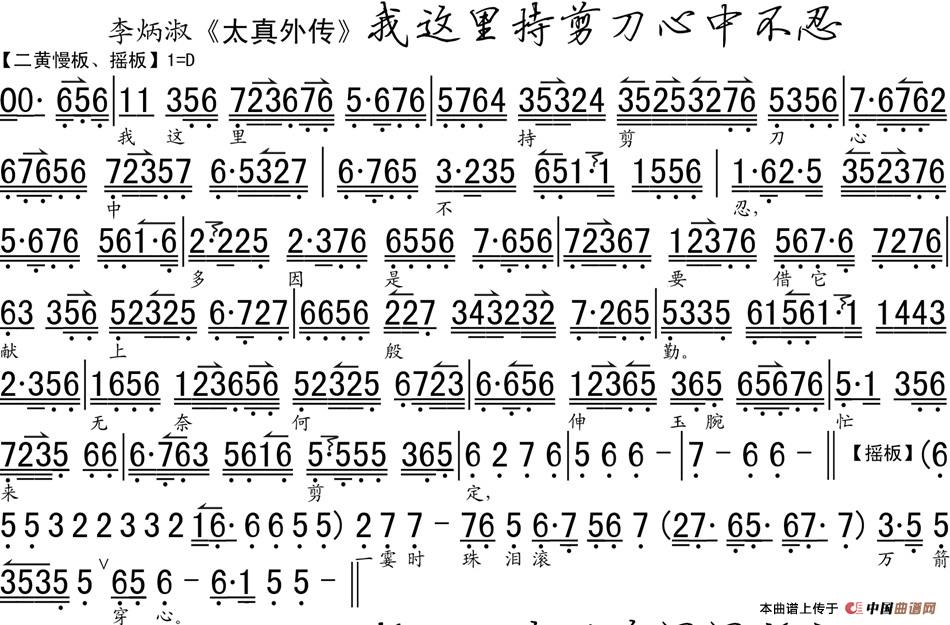 我这里持剪刀心中不忍(《太真外传》选段、琴谱)