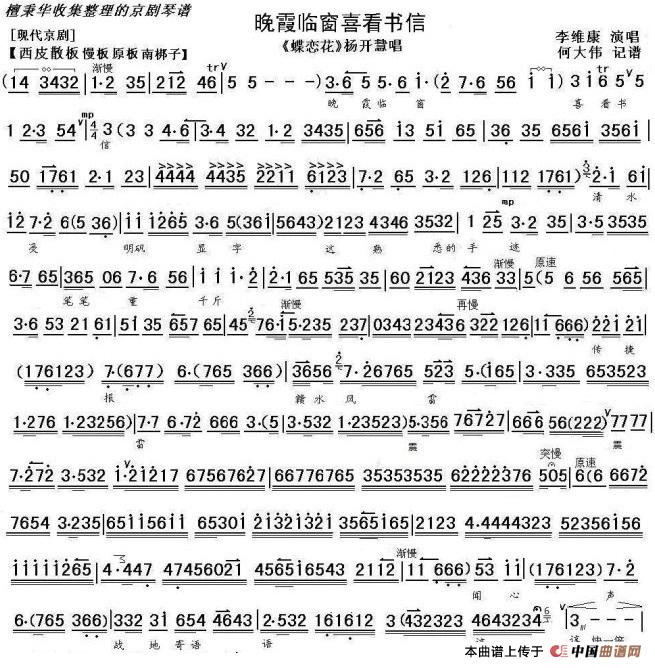 晚霞临窗喜看书信(《蝶恋花》杨开慧唱段、琴谱)