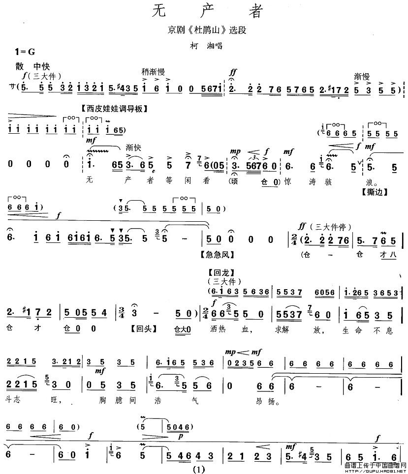 无产者(《杜鹃山》柯湘唱段)