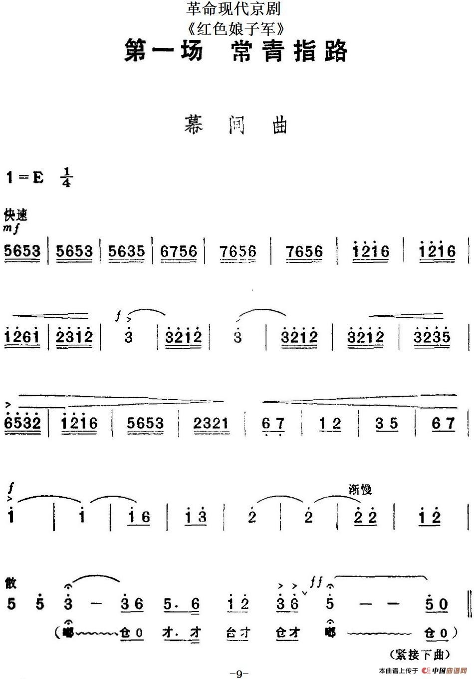 革命现代京剧《红色娘子军》全剧主旋律乐谱之第一场 常青指路