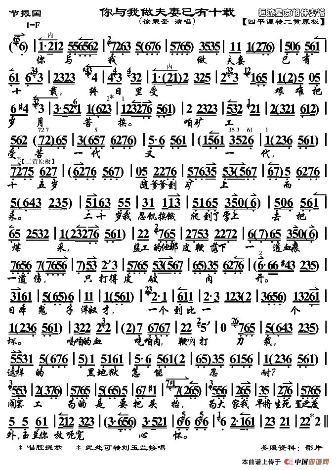 你与我做夫妻已有十载(《节振国》选段、琴谱)