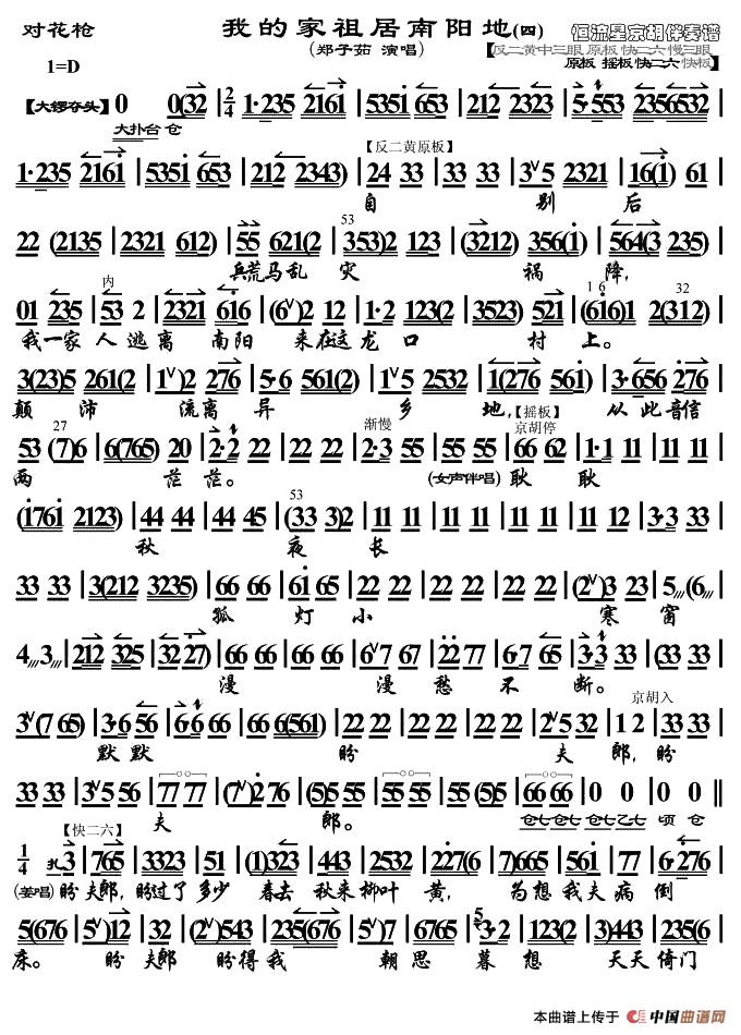 我家祖居南阳地(《对花枪》选段、琴谱)