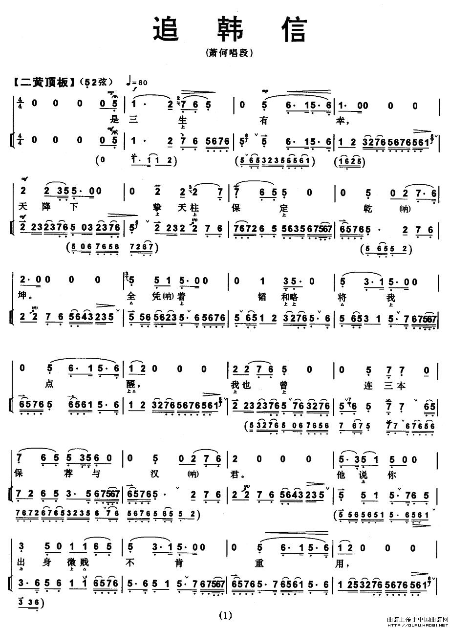 关于《追韩信》曲谱的评论