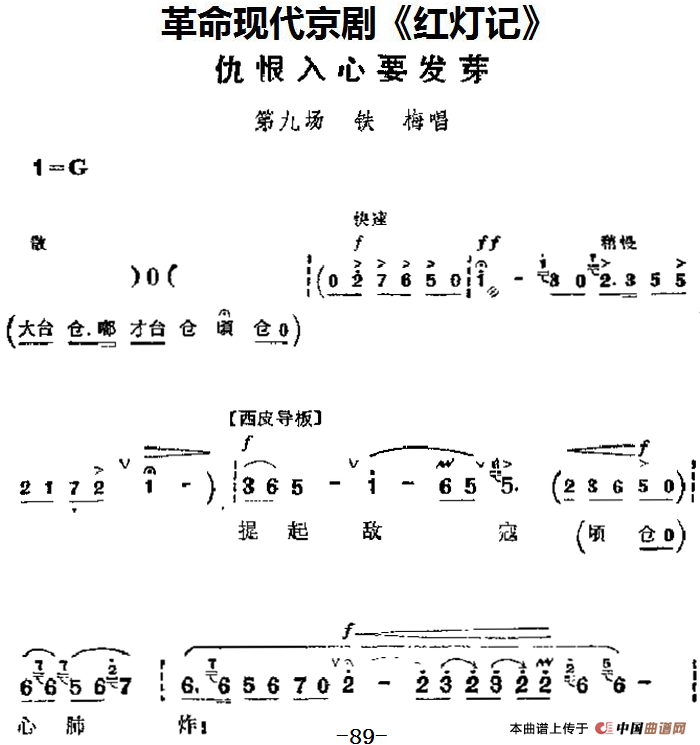 关于《革命现代京剧《红灯记》主要唱段:仇恨入心要发芽》曲谱的评论