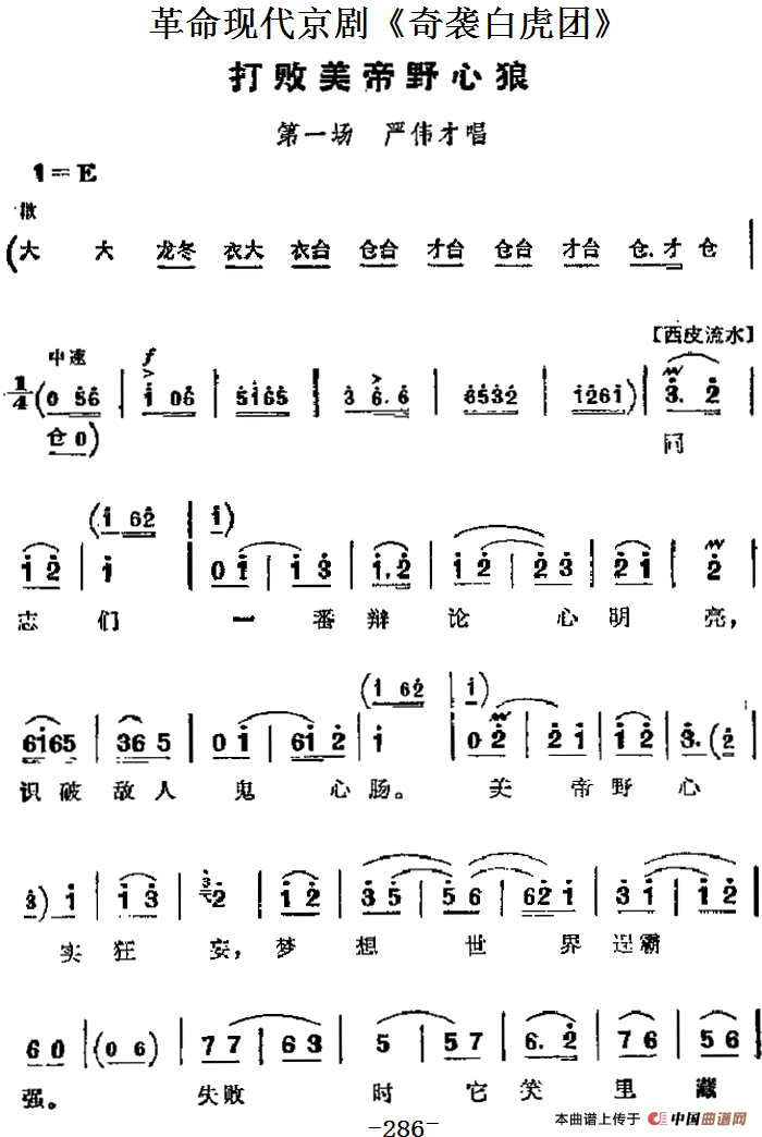 关于《革命现代京剧《奇袭白虎团》主要唱段:打败美帝野心狼》曲谱的评论