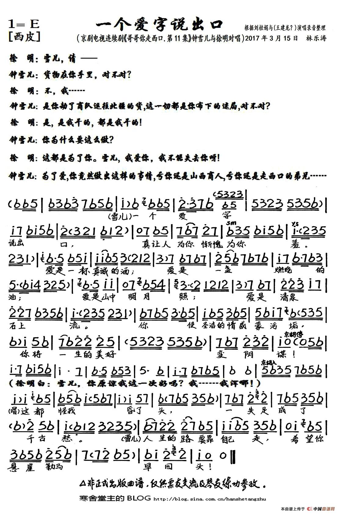 一个爱字说出口(京剧电视剧《哥哥你走西口·第11集》选段、琴谱)