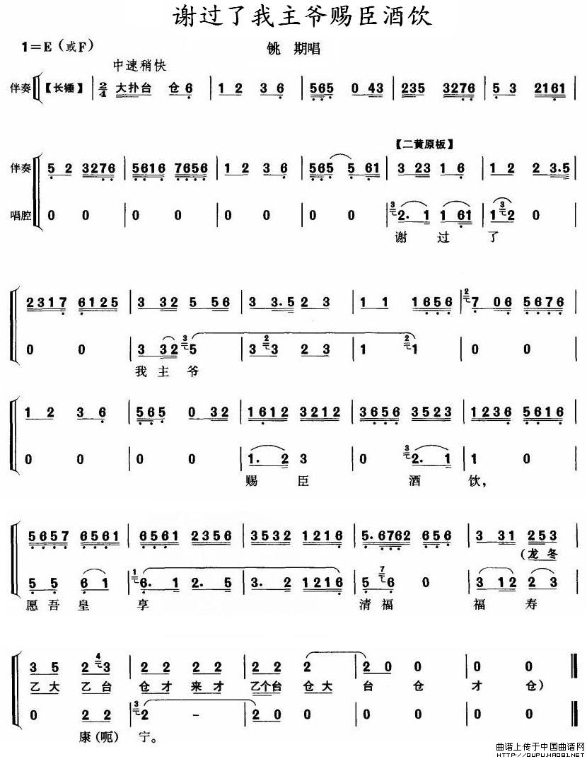 关于《谢过了我主爷赐臣酒饮》曲谱的评论