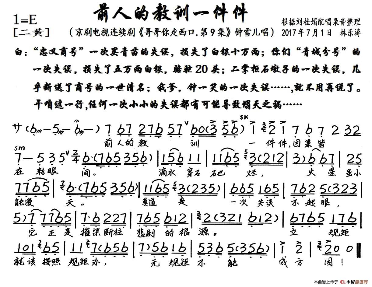 前人的教训一件件(京剧电视剧《哥哥你走西口.第9集》选段、琴谱)