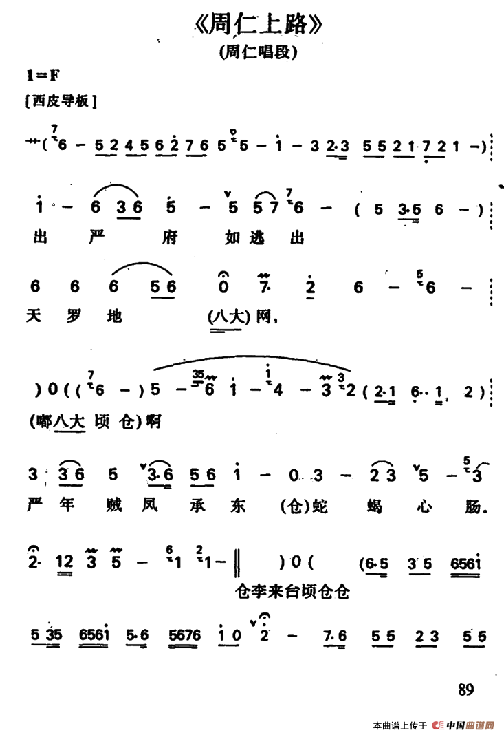 关于《周仁上路》曲谱的评论
