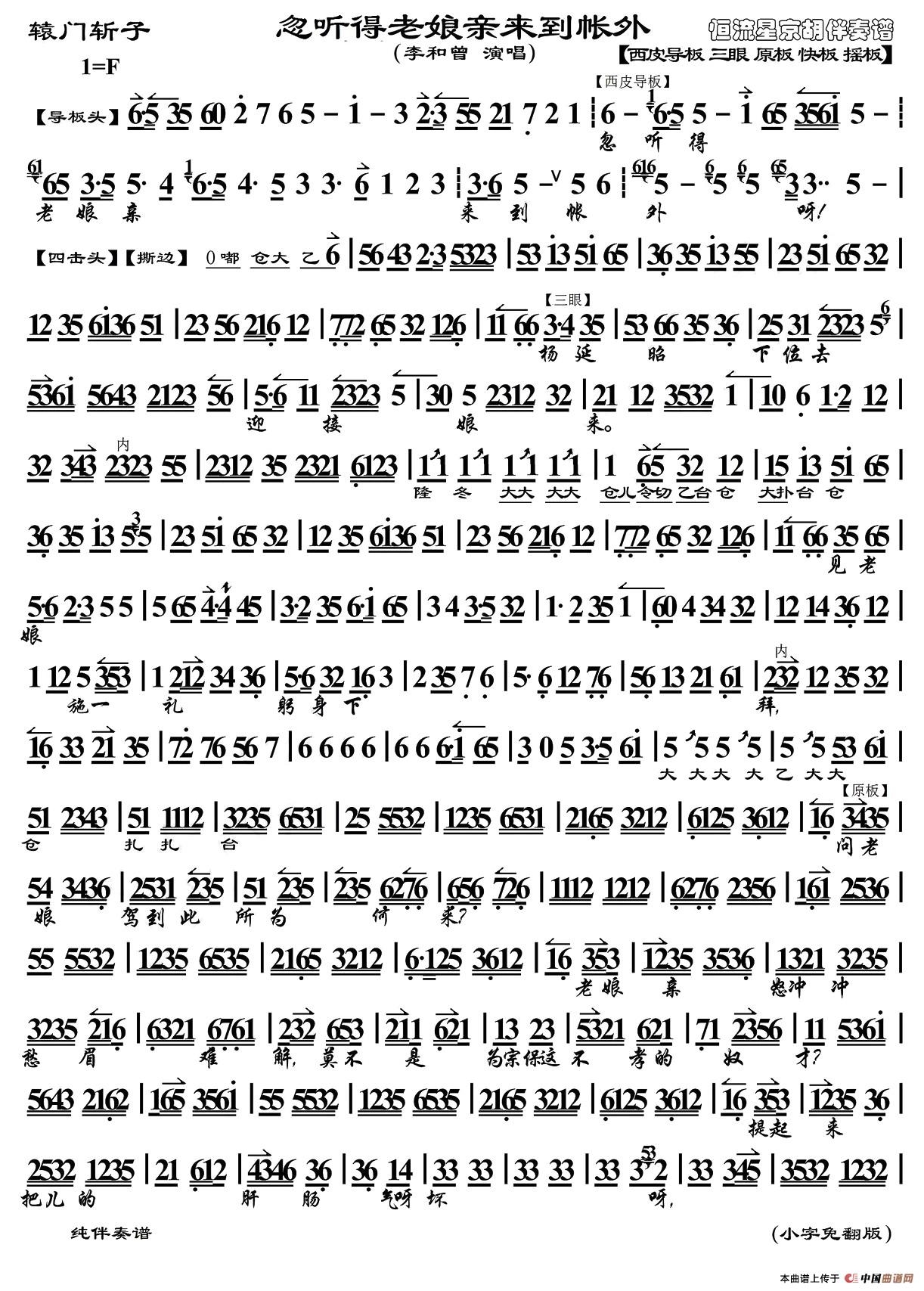 关于《忽听得老娘亲来到帐外》曲谱的评论