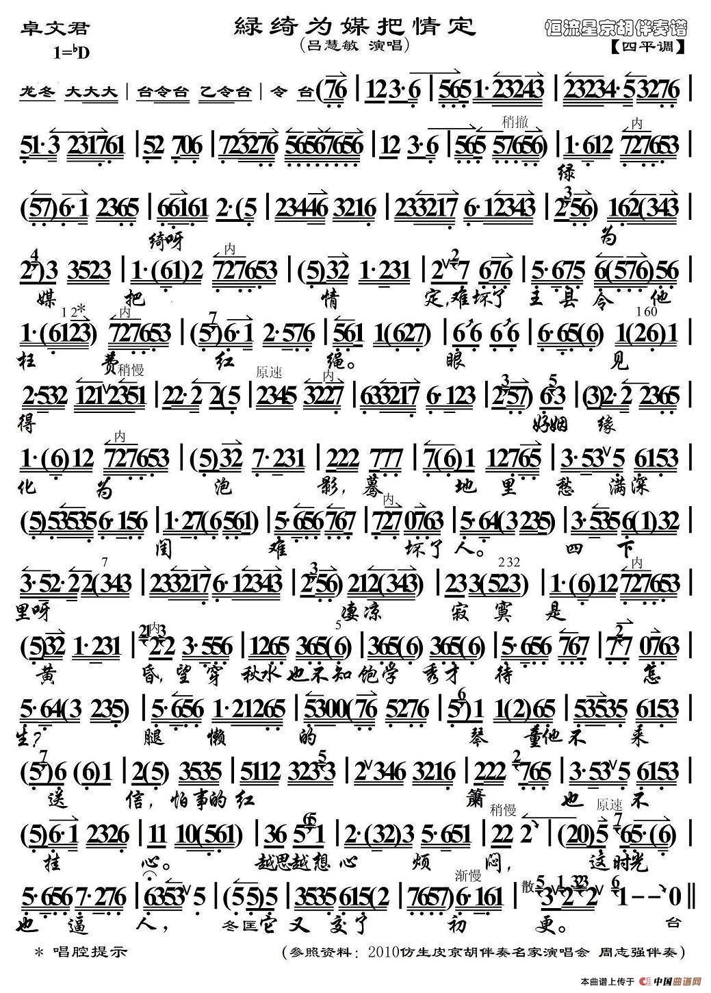 绿绮为媒把情定(《卓文君》选段、琴谱)