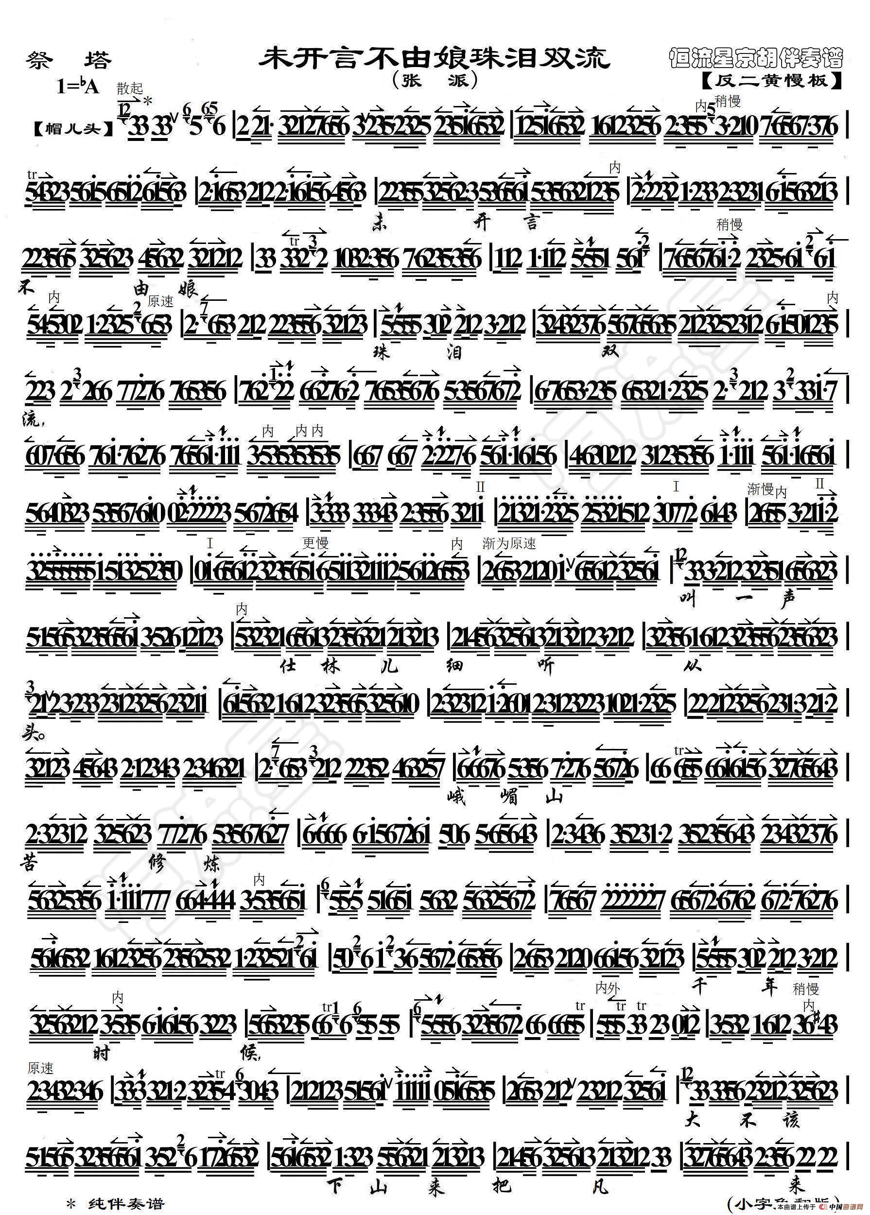 未开言不由娘珠泪双流(张派《祭塔》选段、琴谱)
