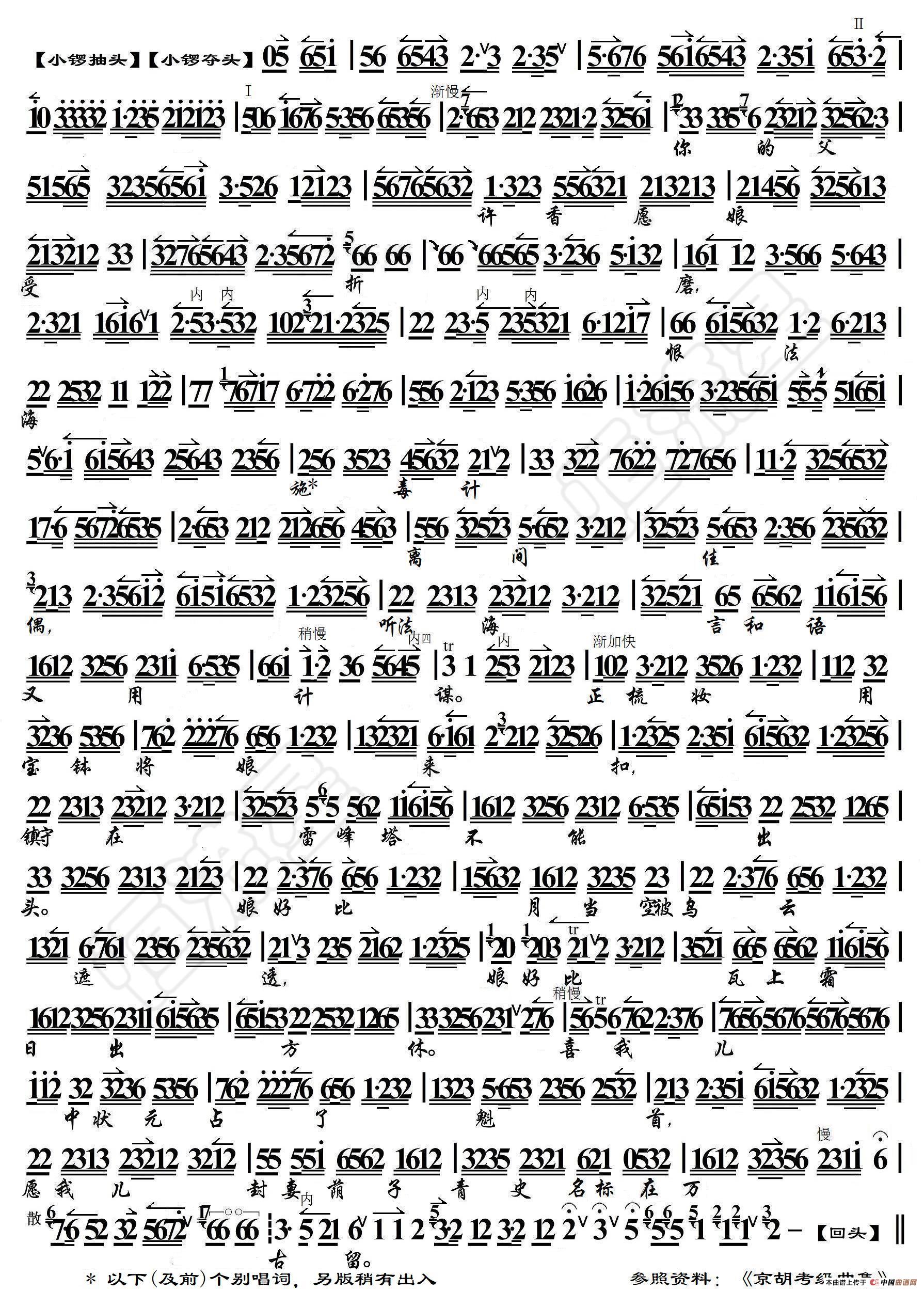 关于《未开言不由娘珠泪双流》曲谱的评论