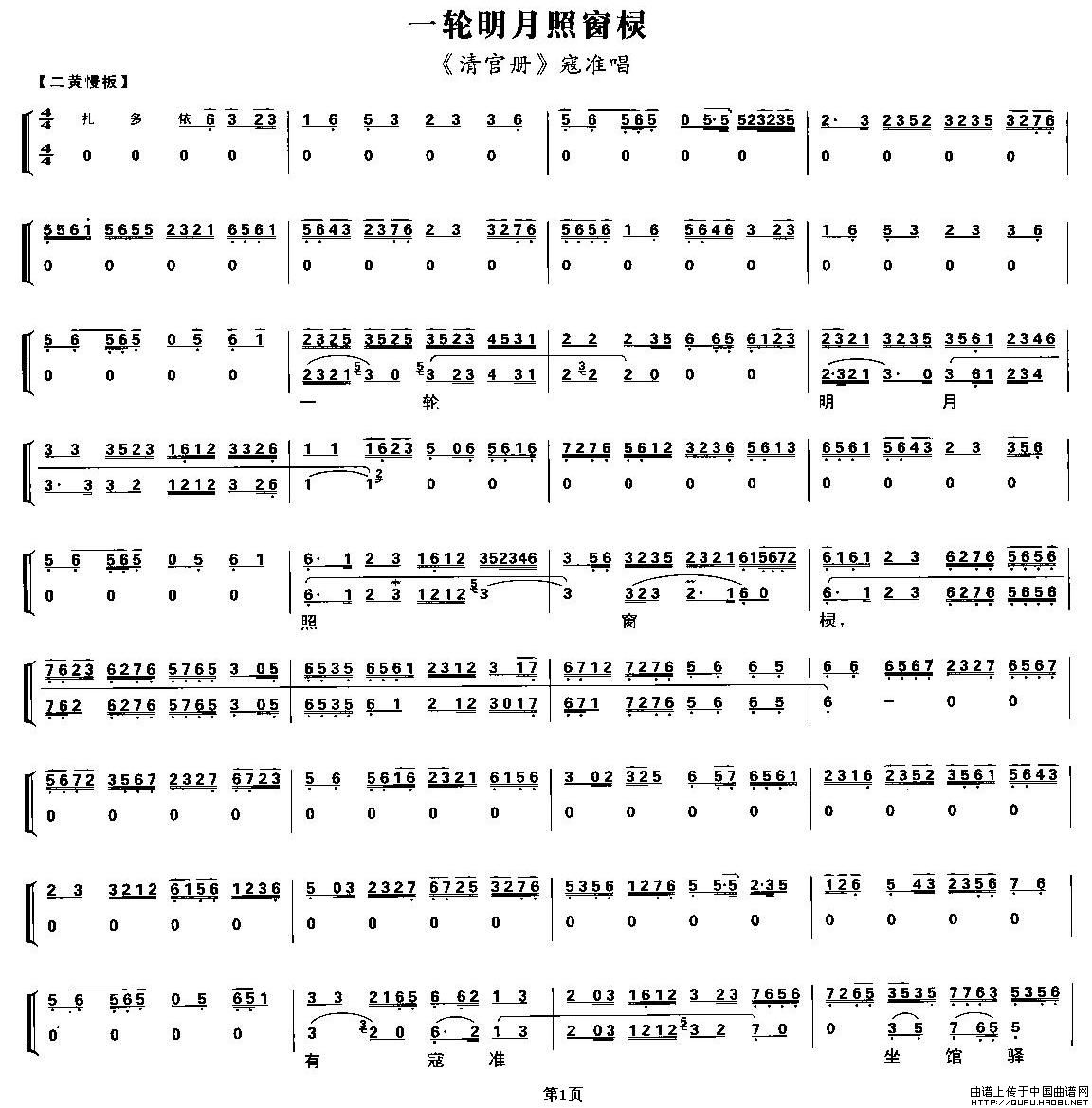 关于《一轮明月照窗棂》曲谱的评论