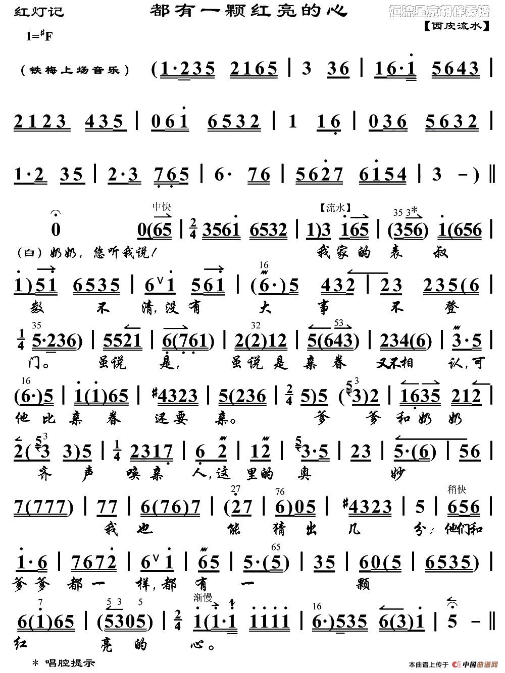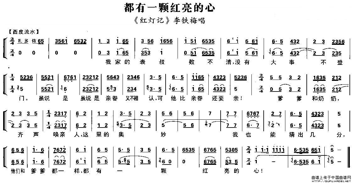 都有一颗红亮的心(《红灯记》李铁梅唱段、琴谱)