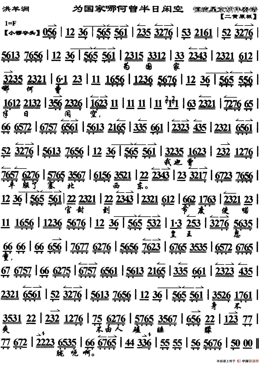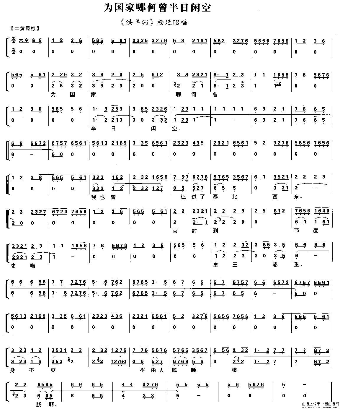 为国家哪何曾半日闲空(《洪羊洞》杨延昭唱段、琴谱)