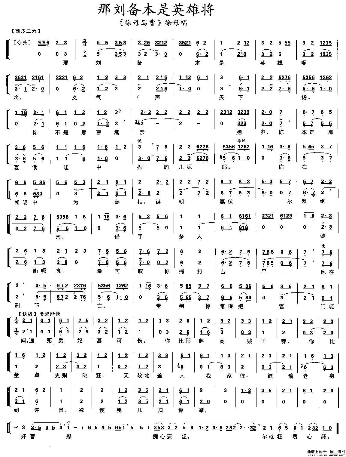 关于《那刘备本是英雄将》曲谱的评论