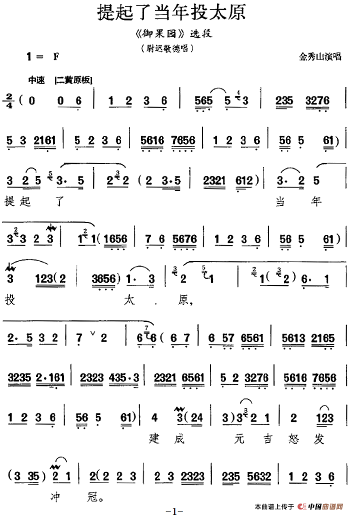 关于《提起了当年投太原》曲谱的评论