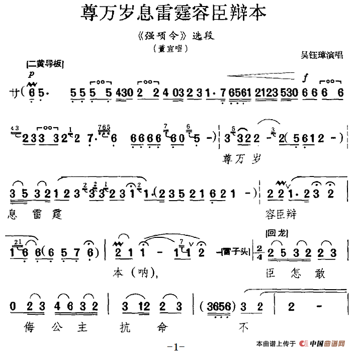 尊万岁息雷霆容臣辩本(《强项令》选段、董宣唱段)