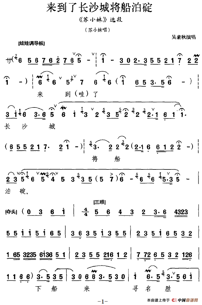 关于《来到了长沙城将船泊碇》曲谱的评论