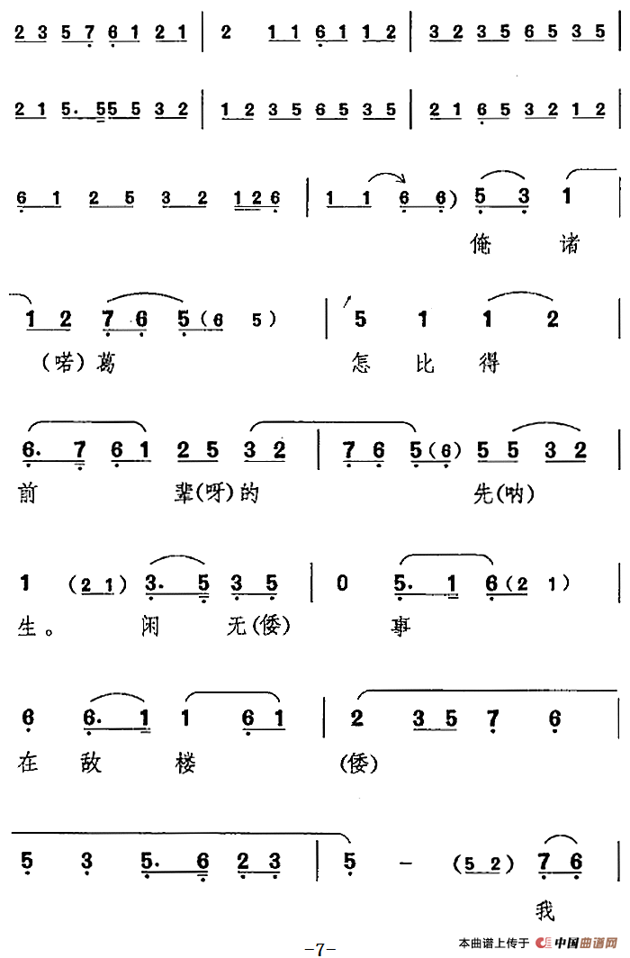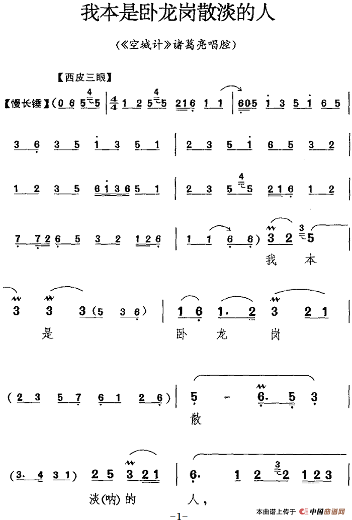 关于《我本是卧龙岗散淡的人》曲谱的评论