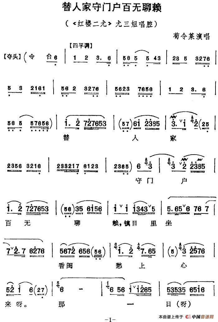 关于《替人家守门户百无聊赖》曲谱的评论