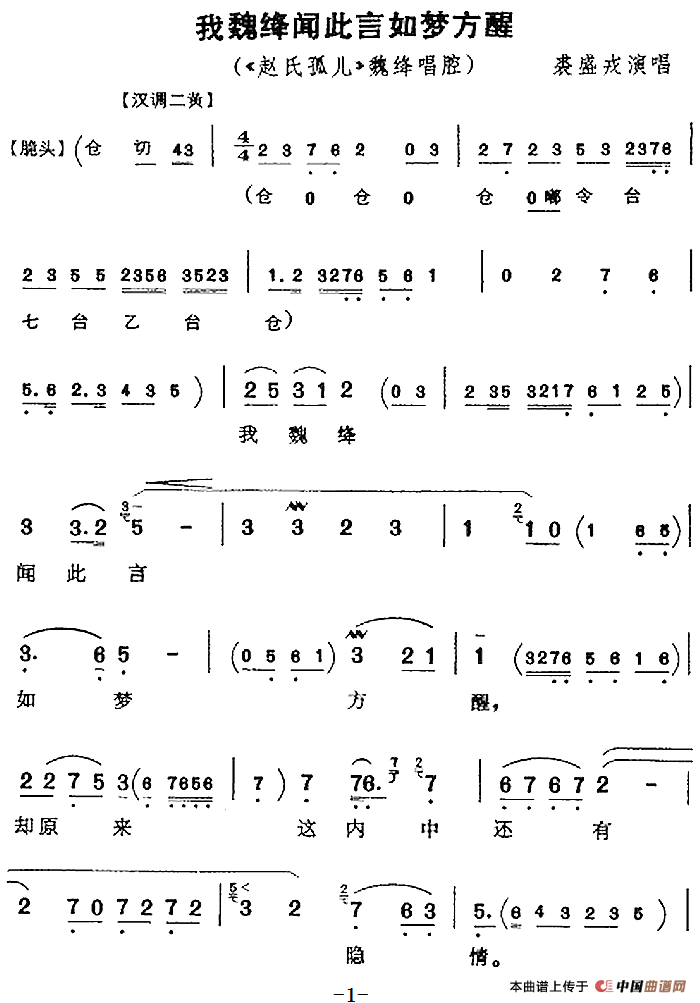 关于《我魏绛闻此言如梦方醒》曲谱的评论