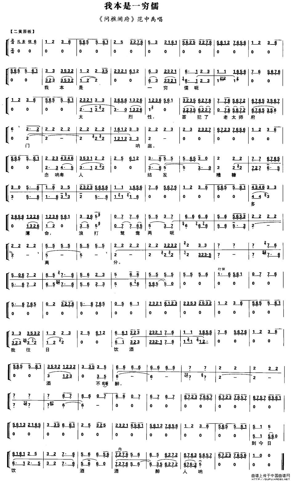 我本是一穷儒(《问樵闹府》范中禹唱段、琴谱)