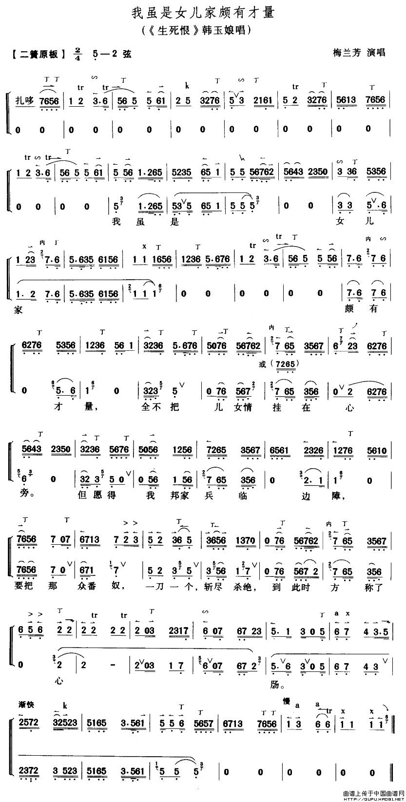 我虽是女儿家颇有才量(《生死恨》韩玉酿唱段、琴谱)