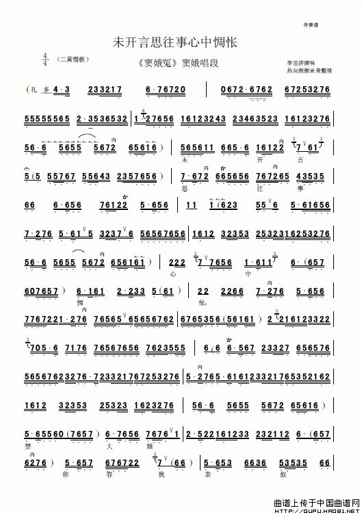 未开言思往事心中惆怅(《窦娥冤》选段、李世济演唱版、琴谱)