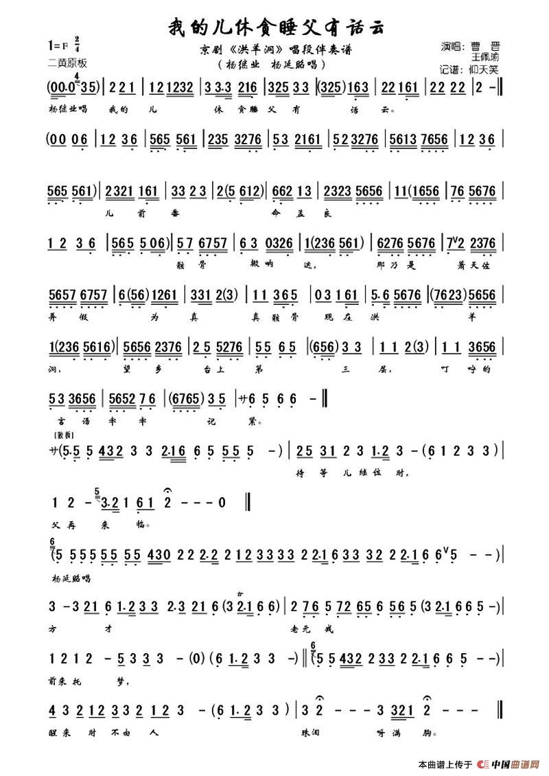 《洪羊洞》全本唱段伴奏谱:我的儿休贪睡父有话云(杨继业 杨延昭唱段)