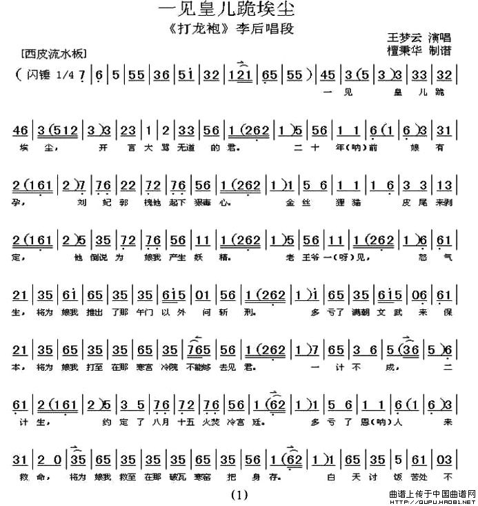 一见皇儿跪埃尘(《打龙袍》李后唱段、琴谱)