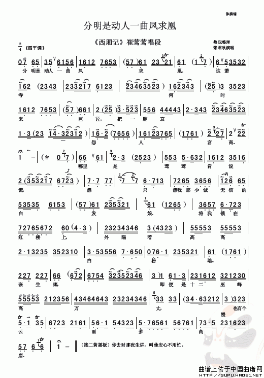 关于《分明是动人一曲凤求凰》曲谱的评论