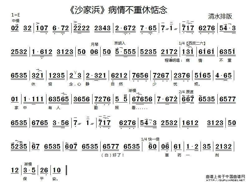 关于《病情不重休惦念》曲谱的评论