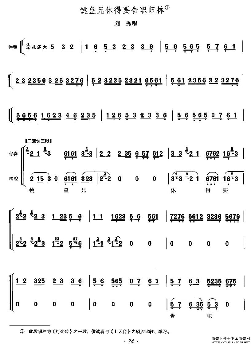 关于《铫皇兄休得要告辞归林》曲谱的评论