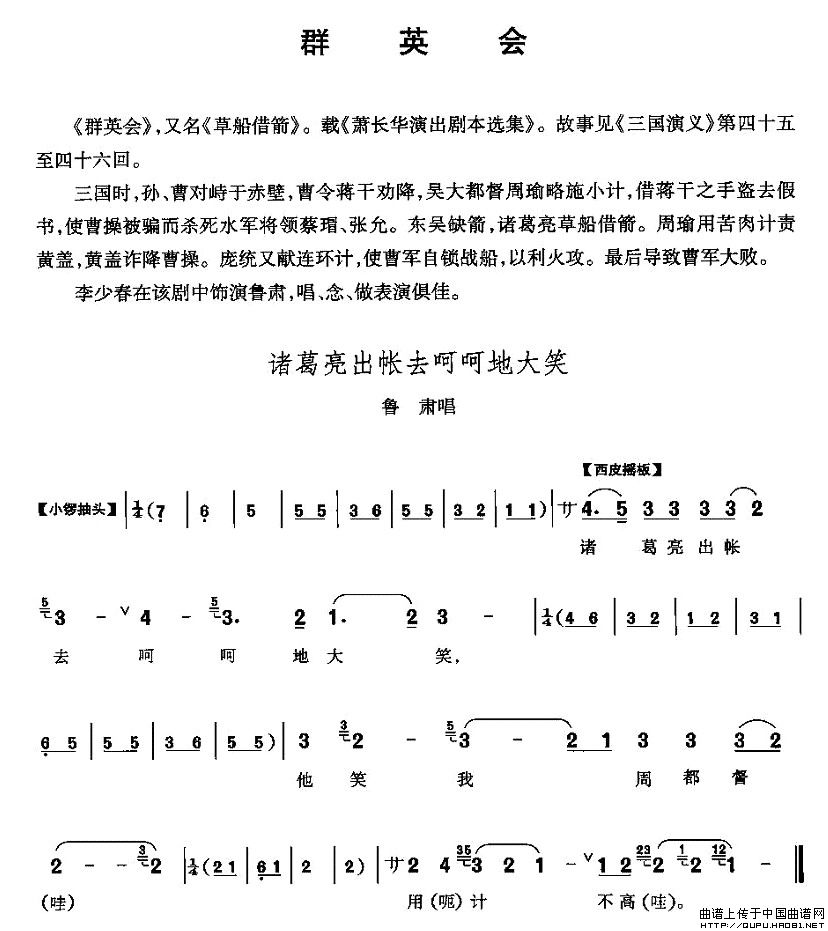 关于《诸葛亮出帐去呵呵大笑》曲谱的评论